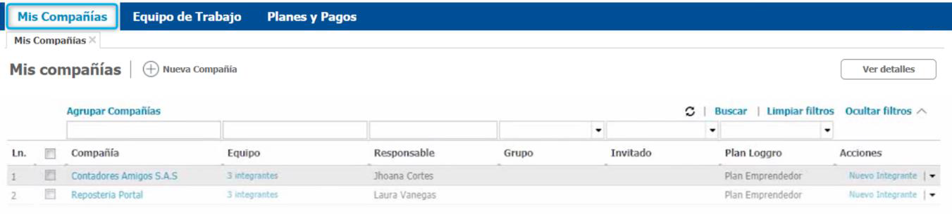 Luego de esto, la compañía será visible en tu portal de contador desde la opción de Mis Compañías.