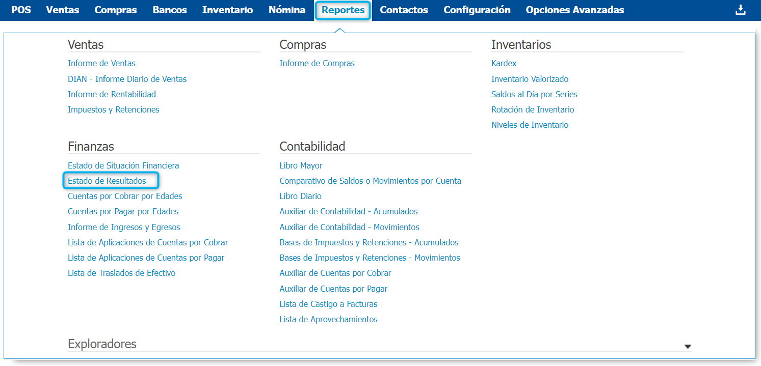 Para acceder al reporte puedes dirigirte a la opción: Reportes → Estado de Resultados.