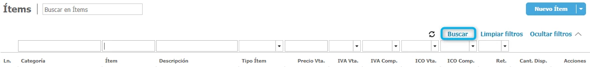 En la ventana de lista de ítems encontrarás los siguientes campos para que realices búsquedas de acuerdo a tus necesidades.