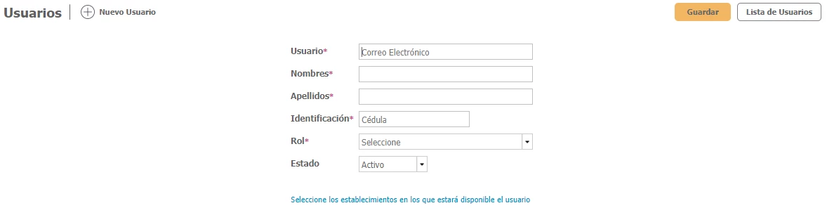 Recuerda que solo los usuarios Activos pueden ingresar a la compañía y el número de usuarios que puedes tener en este estado depende del plan que adquiriste. - Si tu compañía cuenta con varios establecimientos, podrás definir si el usuario puede acceder a la información de todos ellos o si por el contrario su ingreso estará limitado a uno específico.