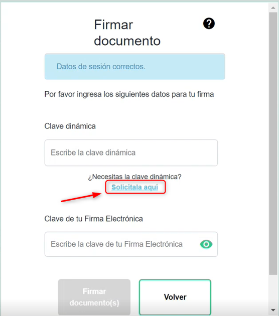 Generar una nueva clave dinámica para esta nueva firma y estableces la contraseña para firma de documentos.