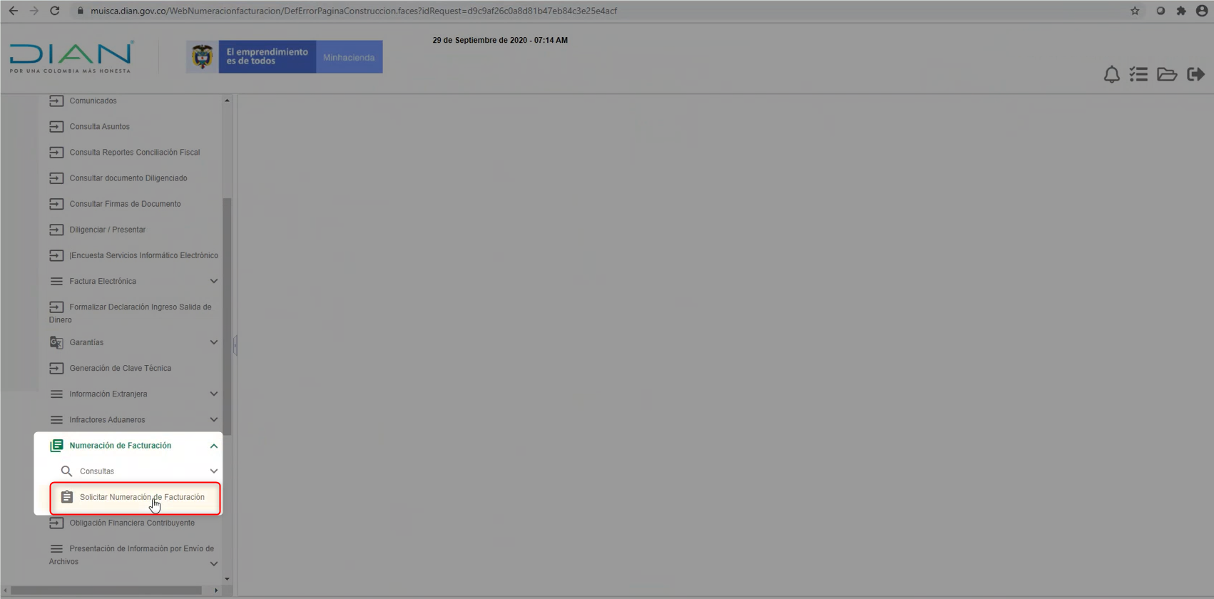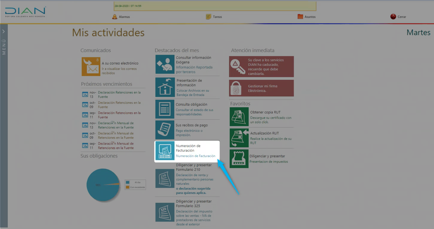En las opciones que se despliegan da clic en Solicitar Numeración de Facturación.