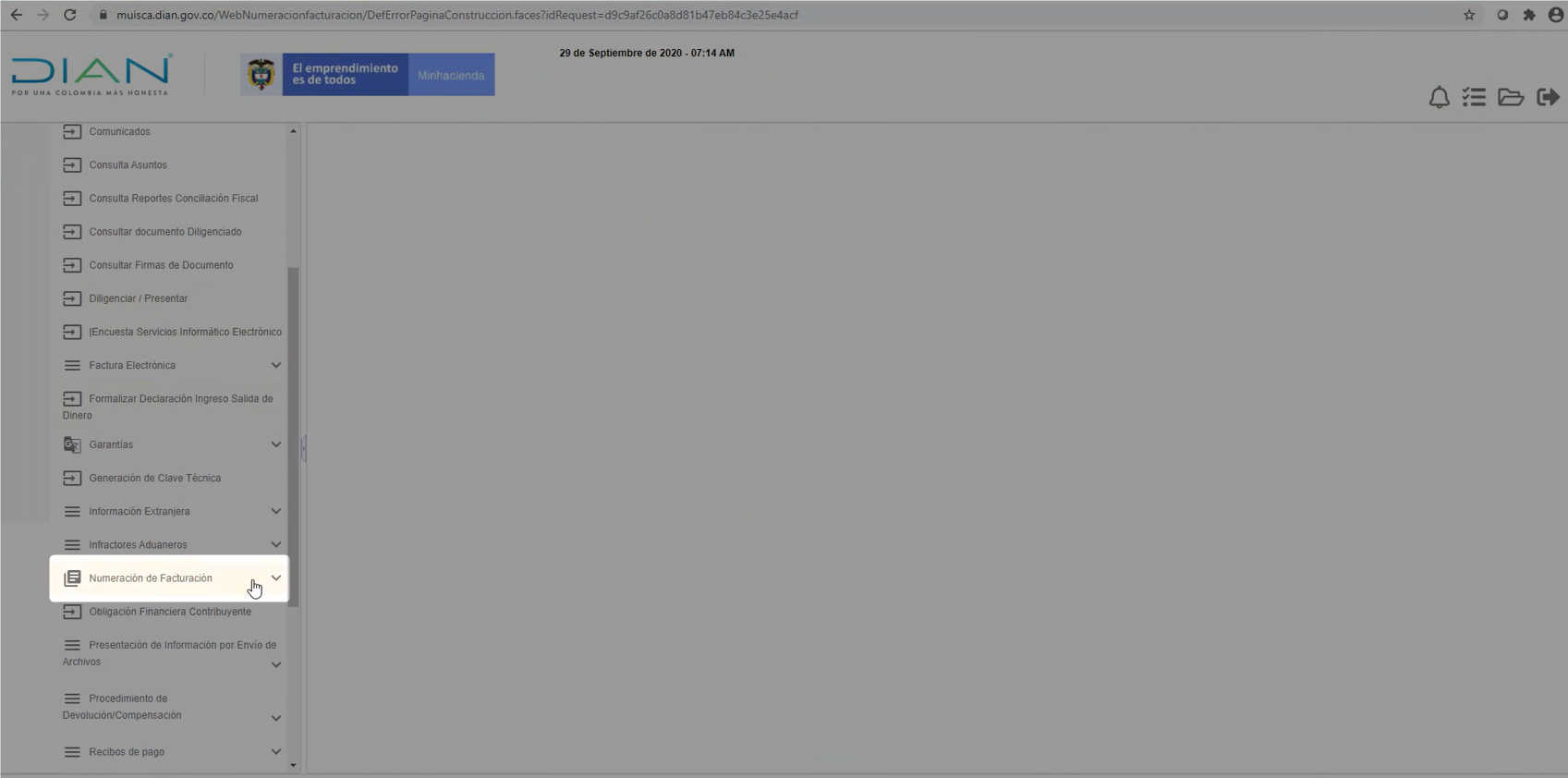 En la nueva ventana debes desplazarte por el menú de la sección izquierda y dar clic nuevamente en Numeración de Facturación.