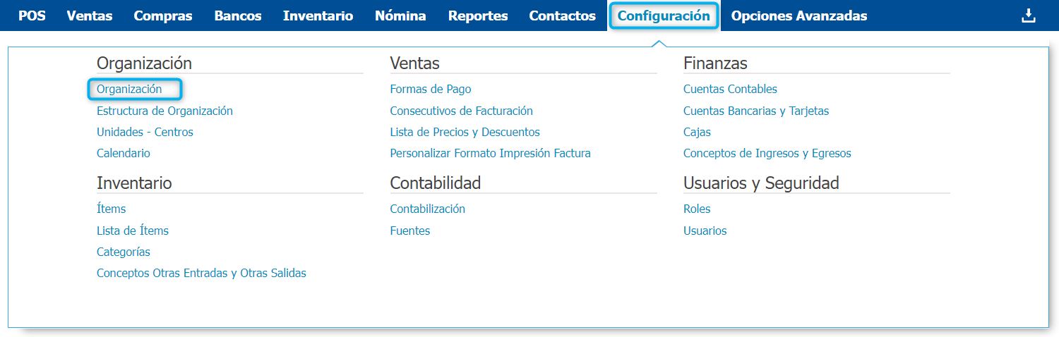 Ingresa a Configuración → Organización
