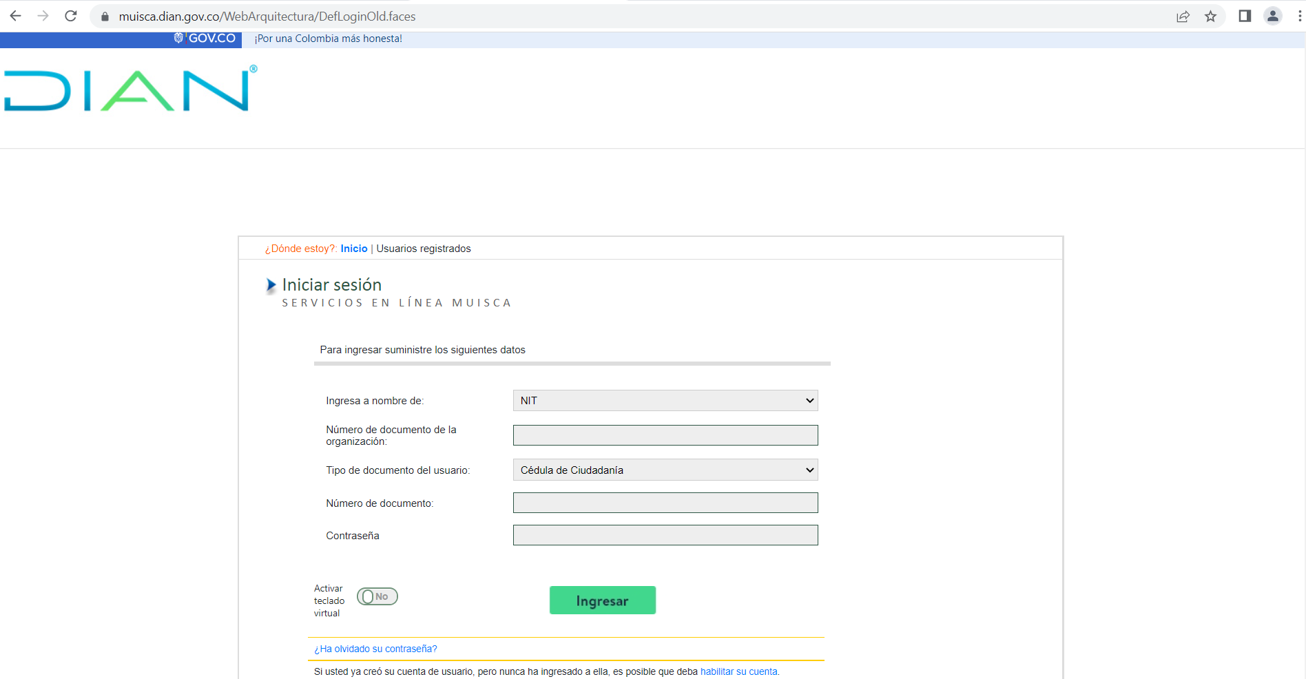 Los campos que visualizas con * son de obligatorio diligenciamiento.