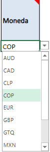 Si por el contrario seleccionaste que el ingreso es en COP o pesos colombianos este campo puede quedar en blanco.
