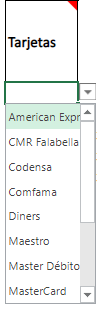 Tarjetas: Si el pago fue con tarjeta, en este campo debes indicar la franquicia de la misma. Debes dar clic y seleccionarla de la lista desplegable.