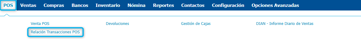 - Ubica la factura a pagar, puedes ingresar por la ruta POS → Relación Transacciones POS → Facturas.
