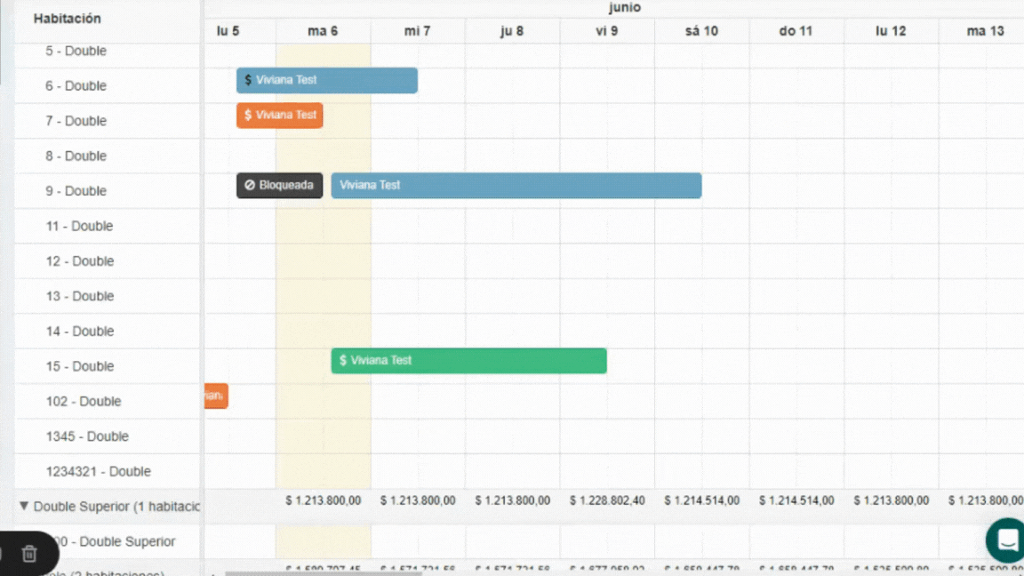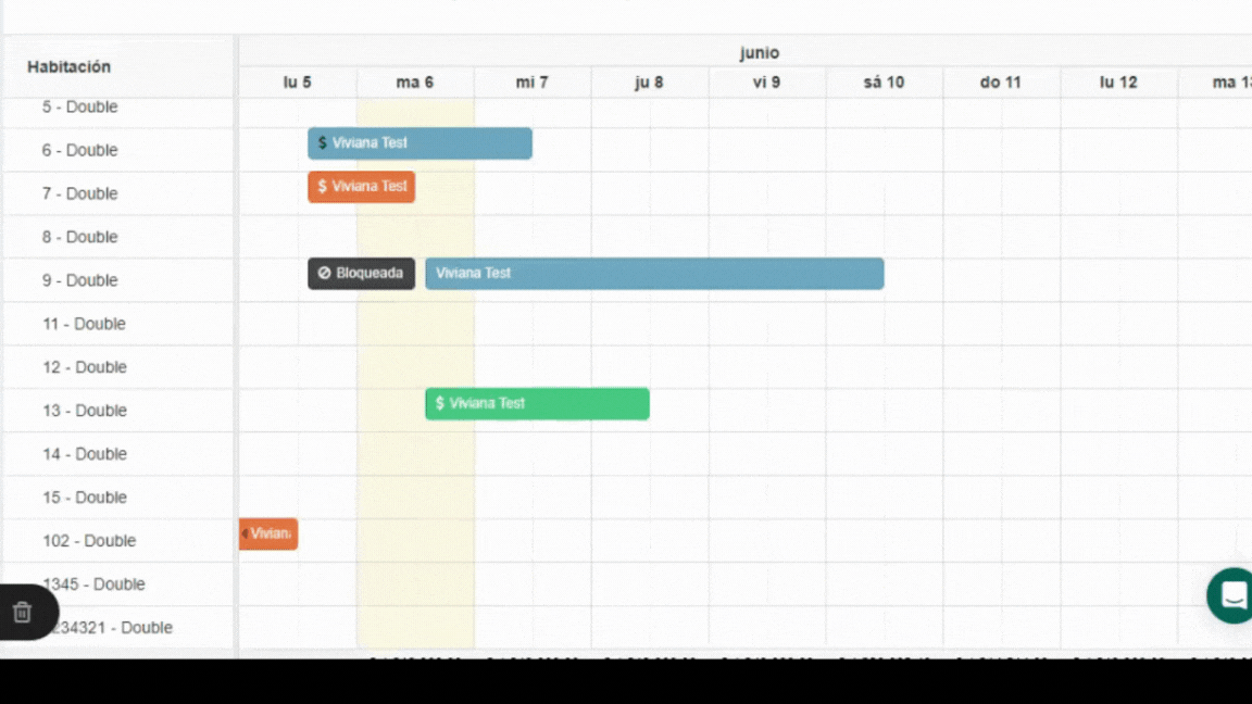 Así mismo para mover una reserva de una habitación a otra solo debes arrastrarla a la habitación que deseas.