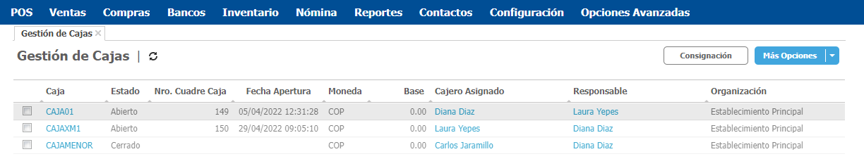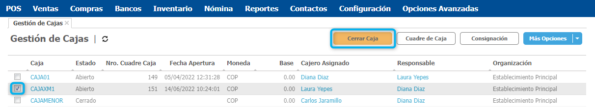 Ingresa por la ruta POS → Gestión de cajas.