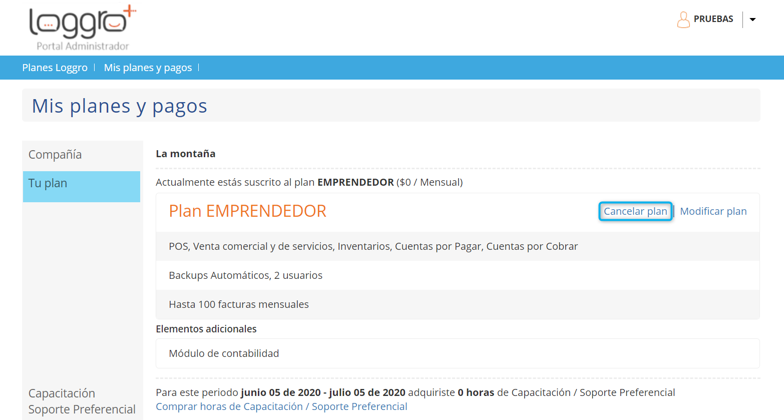 Cómo cancelar el plan de Loggro con el que cuenta la compañía - Loggro Pymes