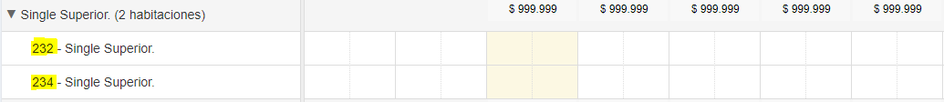 Para mayor entendimiento de tu calendario ahora puedes acomodar las habitaciones a tu gusto. En este ejemplo se tiene organizado que la habitación 232 aparezca primero y luego la 234.