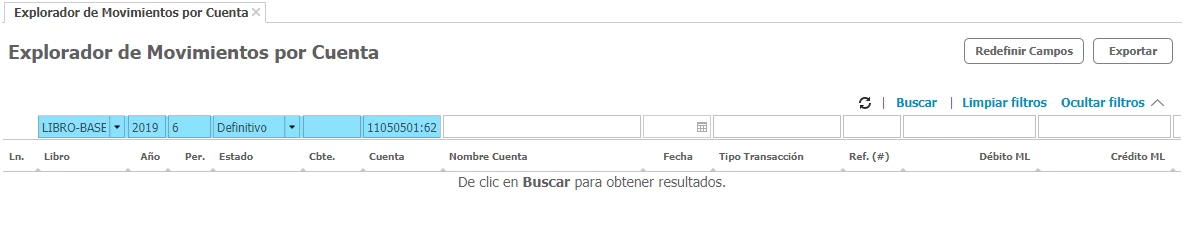 Cómo consultar el Explorador de movimientos por cuenta contable