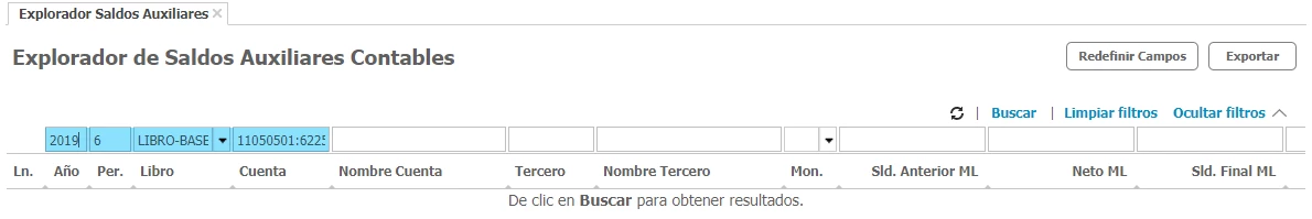 - Sld Anterior ML: Especifica el saldo para cada tercero en periodos anteriores.