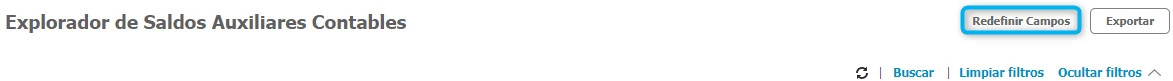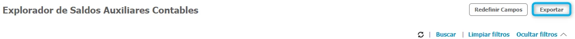Para acceder a este reporte debes dirigirte a Reportes → Exploradores → Explorador Saldos Auxiliares