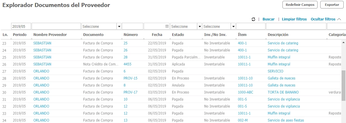 El Explorador de Documentos del Proveedor es un reporte transaccional en el cual se muestran los documentos asociados a los proveedores, como notas crédito y facturas de compra.