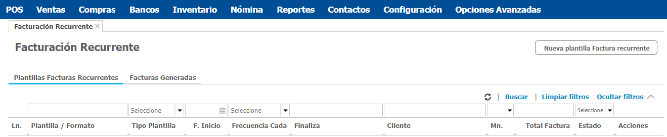 Ingresa por la ruta Ventas → Facturación Recurrente