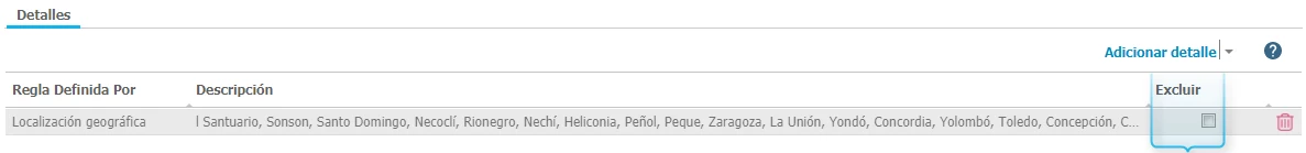 Para adicionar las características de los terceros asociados en este segmento das clic en Adicionar Detalle.