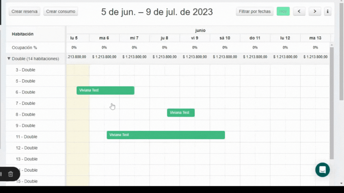 Vas a dar clic sobre entre la fecha y la habitación y seleccionas Crear Reserva.