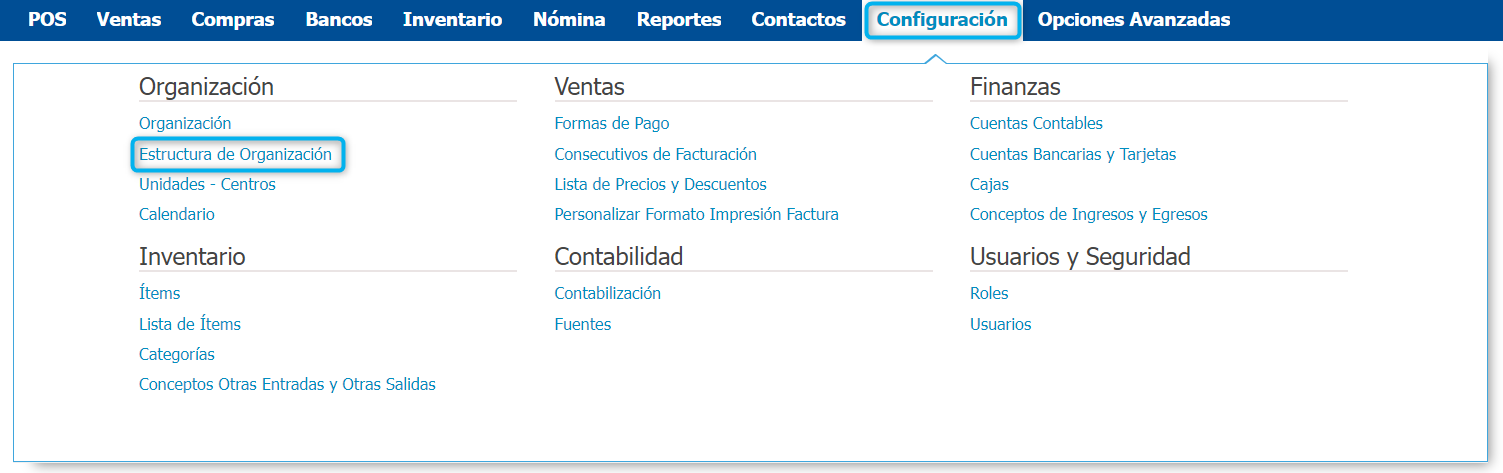 Para ingresar a la estructura debes dirigirte a Configuración → Estructura de Organización