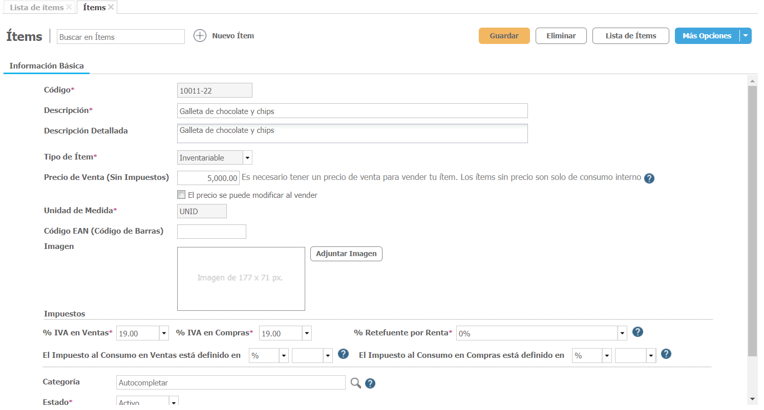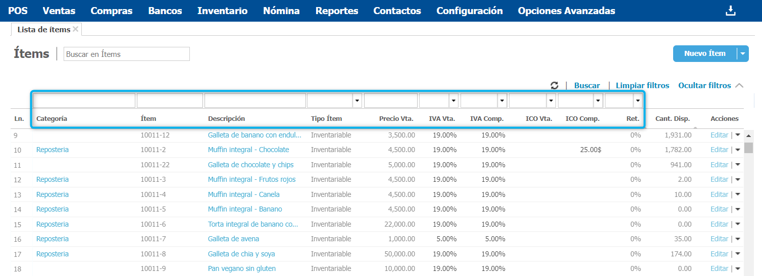 Para realizar este proceso debes ingresar a Inventario → Lista de Ítems o Configuración → Lista de Ítems.