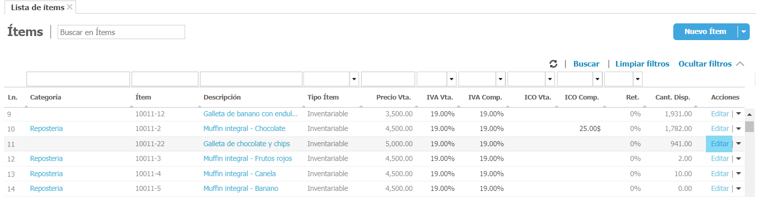 Al ubicar el ítem que deseas modificar debes dirigirte a la columna de Acciones y dar clic en Editar.