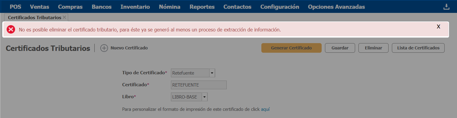 Al generar la eliminación de un certificado tributario se pueden presentar dos casos: