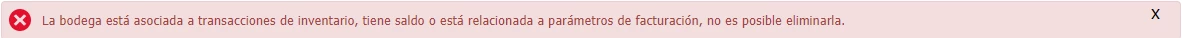 Si el establecimiento o bodega seleccionado tiene transacciones asociadas el sistema te va a mostrar un mensaje como el siguiente: