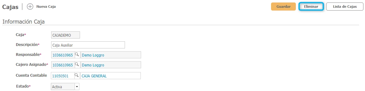 El sistema te permite eliminar una caja siempre y cuando no haya sido utilizada en transacciones de la aplicación.
