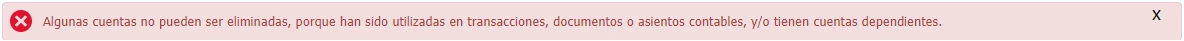 Si la cuenta contable seleccionada tiene transacciones asociadas o movimientos en el sistema, este te muestra un mensaje como el siguiente: