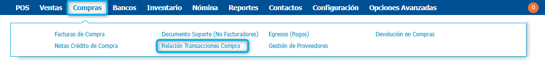 Para acceder en esta ventana ingresas en Compras → Relación Transacciones Compra
