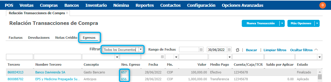 Cómo encontrar un documento generado desde el módulo de compras - Loggro Pymes