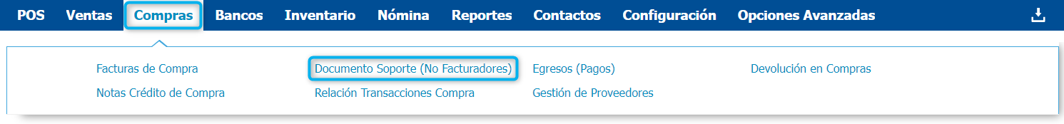 Para realizar el registro en Loggro de este tipo de documentos debes dirigirte a Compras → Documento Soporte (No Facturadores)