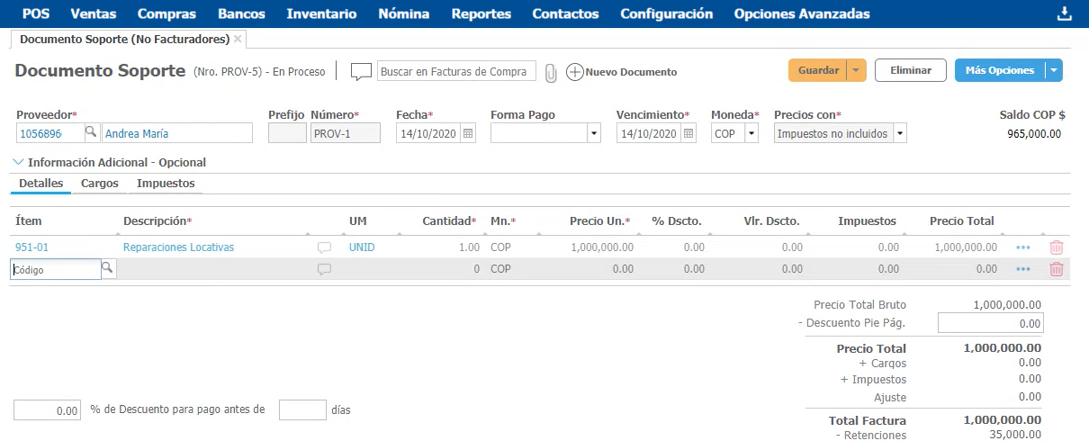 Antes de generar un Documento Soporte