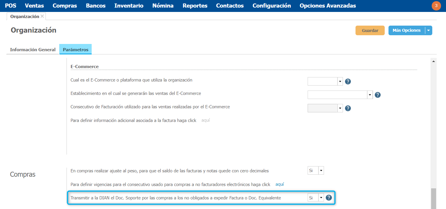 - Si eres facturador electrónico y deseas transmitir el Documento Soporte a la DIAN debes tener habilitada la opción de transmisión desde los parámetros de la organización.