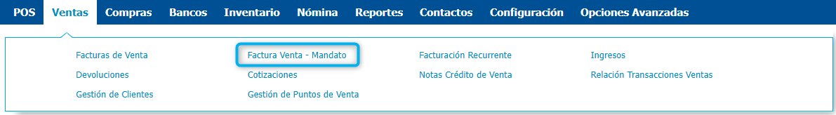 Ingresa por la ruta Ventas Factura Venta - Mandato