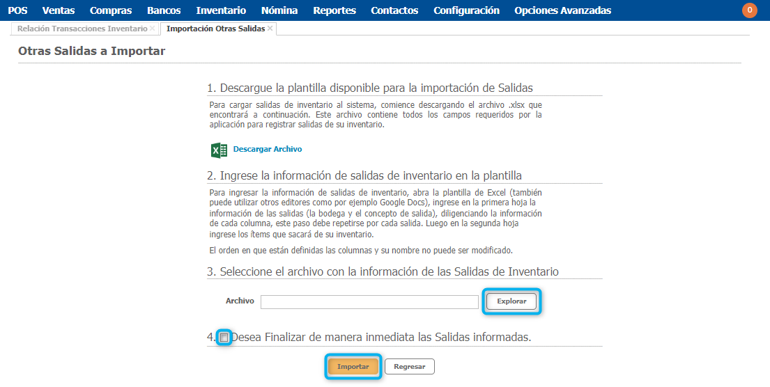 Cómo importar otras salidas de inventario en Loggro Pymes