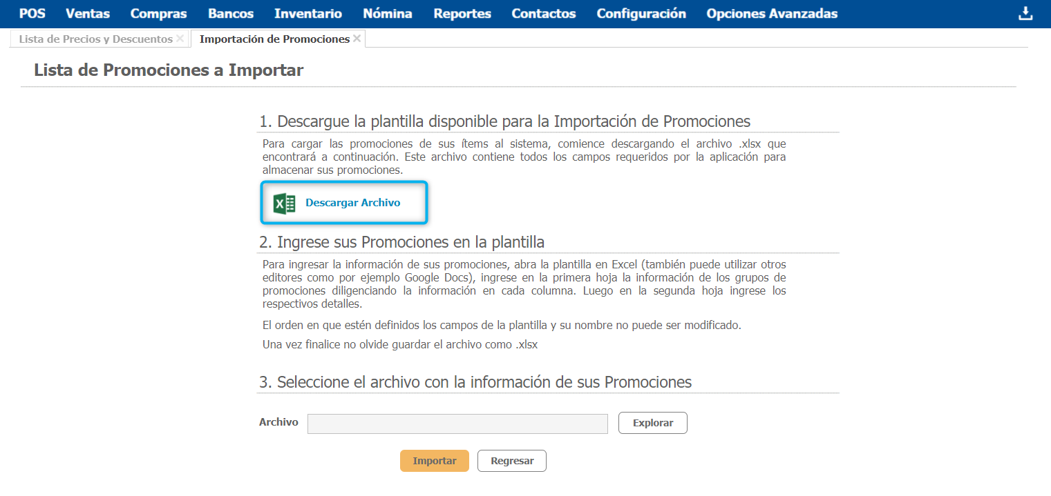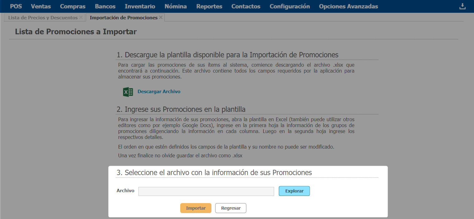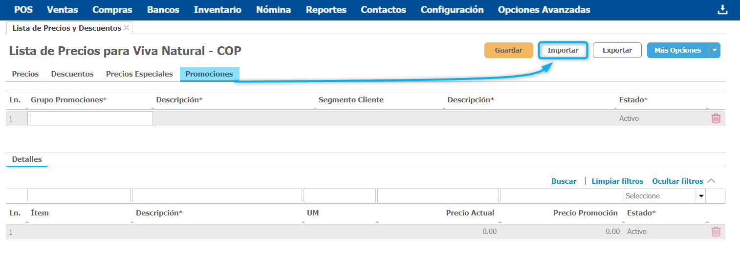 Al verificar nuevamente la información de la ventana de Promociones puedes visualizar aquellos que se importaron.