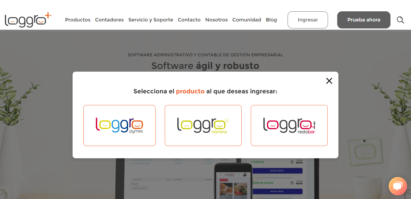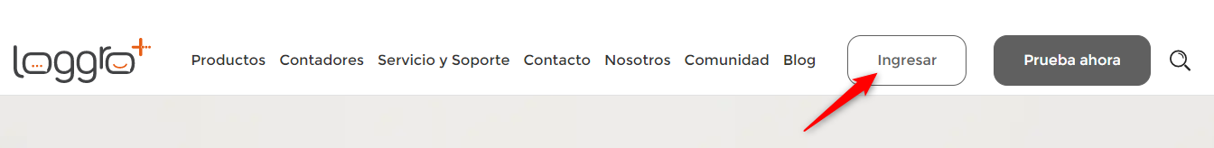 - Ingresa a www.loggro.com y da clic en el botón Ingresar de la parte superior derecha de la ventana.