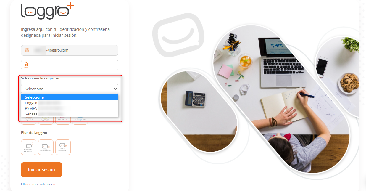 Con esto el usuario podrá ingresar al sistema. Puedes consultar más información de este proceso dando clic aquí. - Si manejas varias compañía en Loggro, luego de esto debes seleccionar a cual de ellas deseas ingresar.