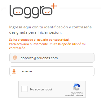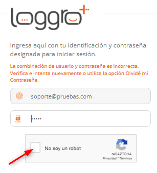 | Primero debes confirmarle a Loggro que no eres un robot o un sistema operativo seleccionando la casilla “No soy un robot” | ![]() |