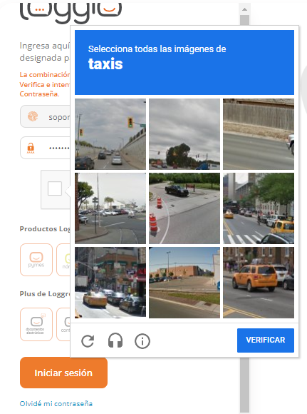 Posteriormente se abrirá una ventana automática llamada CAPTCHA, es una opción de seguridad que permite realizar una validación a través de una serie de imágenes siguiendo un patrón específico. |