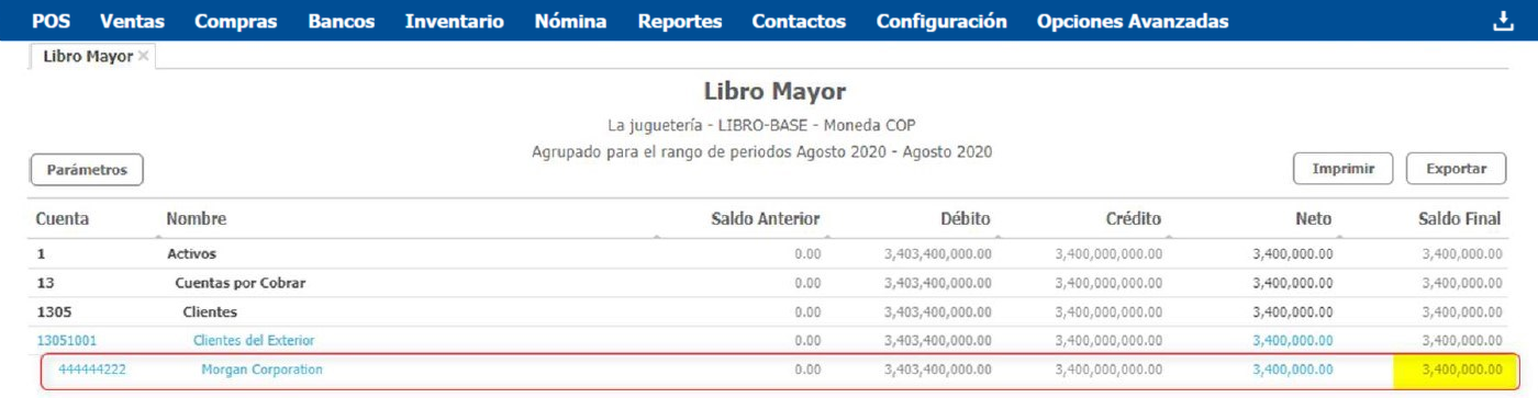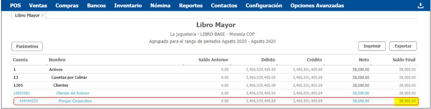 Para finalizar, es importante tener en cuenta que al verificar la cartera del cliente y su información en contabilidad aun registrará el valor de la diferencia en cambio.