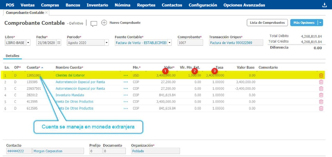 (La cuenta contable que manejes para registrar estas ventas de Clientes del Exterior debe estar configurada con manejo de moneda extranjera) Ver Cuentas Contables