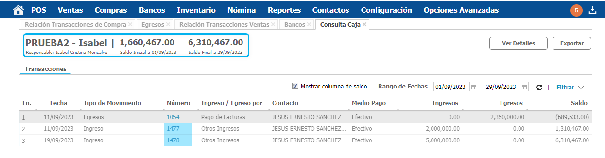 Adicional puedes validar los movimientos en el modulo de Bancos, allí consultas de acuerdo al medio de pago correspondiente. Puedes verificar que en la Cuenta Bancaria o la Caja asociada al reintegro se visualiza el ingreso de dinero.