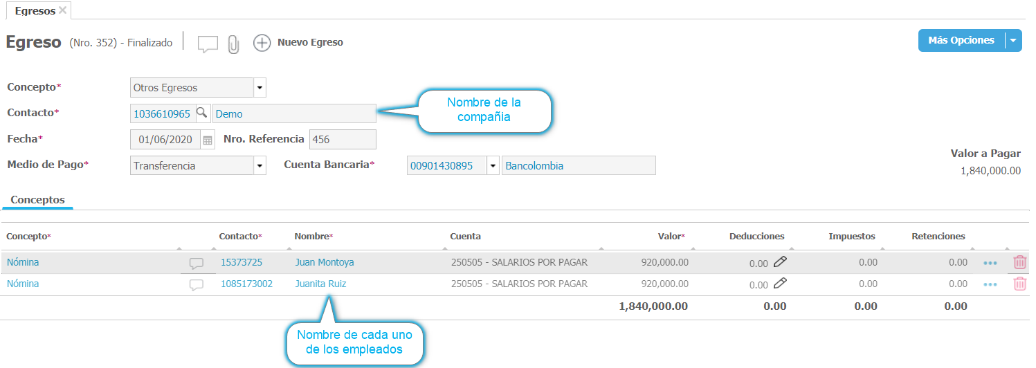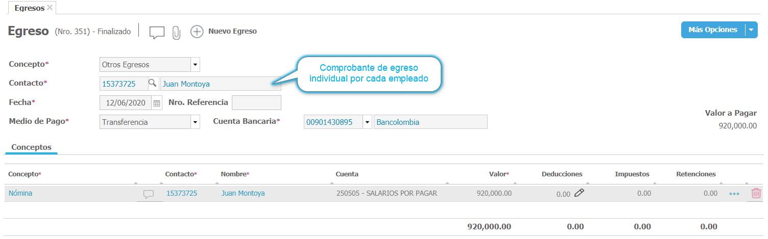 Recuerda que cada uno de estos egresos genera un comprobante contable.