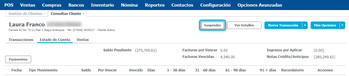 Cómo suspender a un cliente para la venta - Loggro Pymes