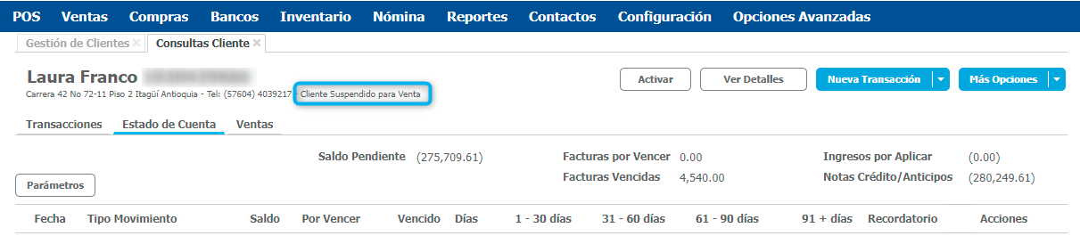 Con esto el cliente quedará suspendido para la venta, y ya no aparecerá habilitado al realizar transacciones.