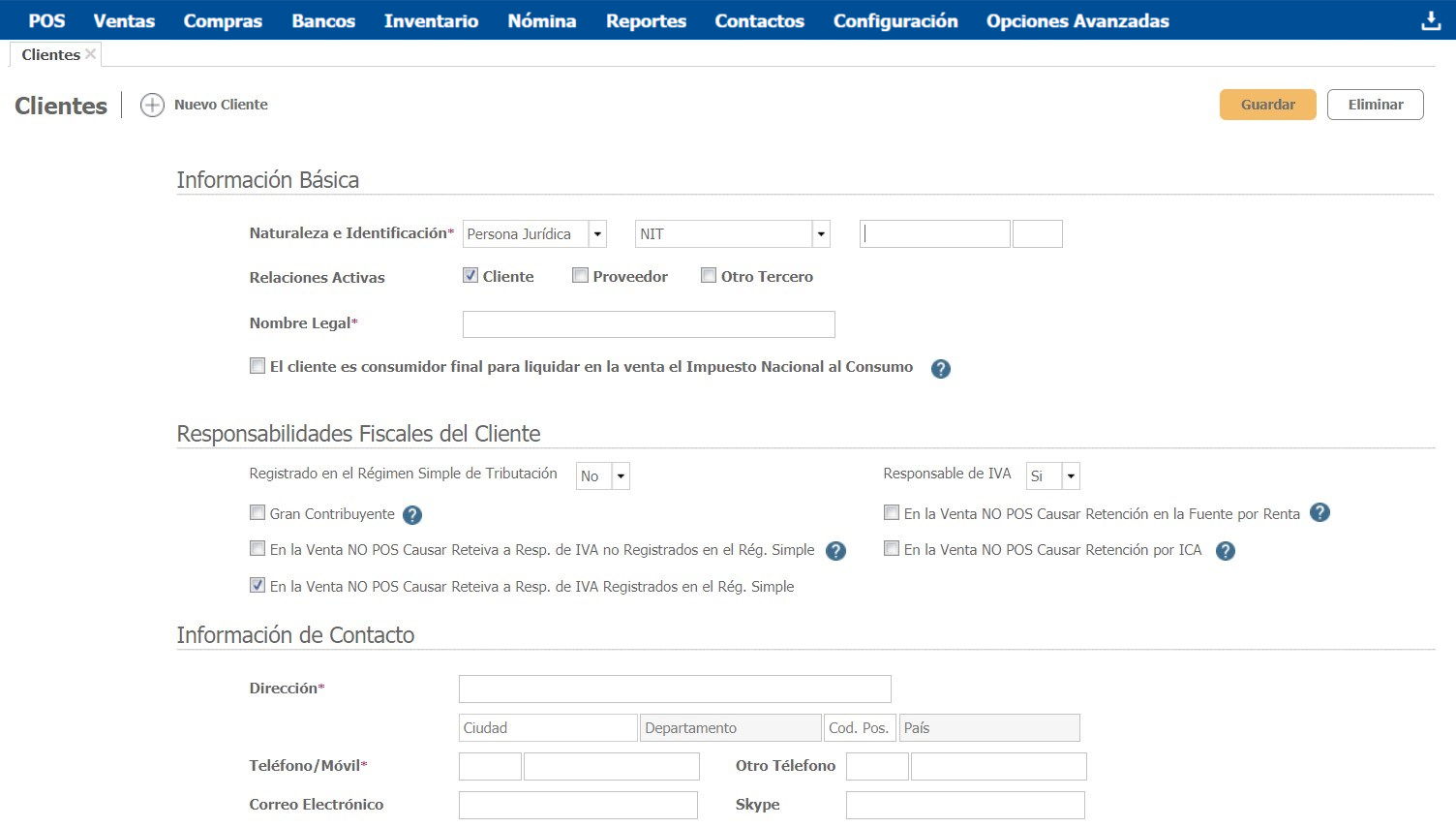 El sistema te muestra el formato que debes diligenciar con la información del cliente.