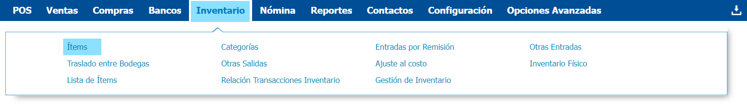 - Inventariables: Son aquello de los cuales manejas un control de inventario para mantener al día las cantidades existentes en las bodegas que tengas creadas en el sistema.